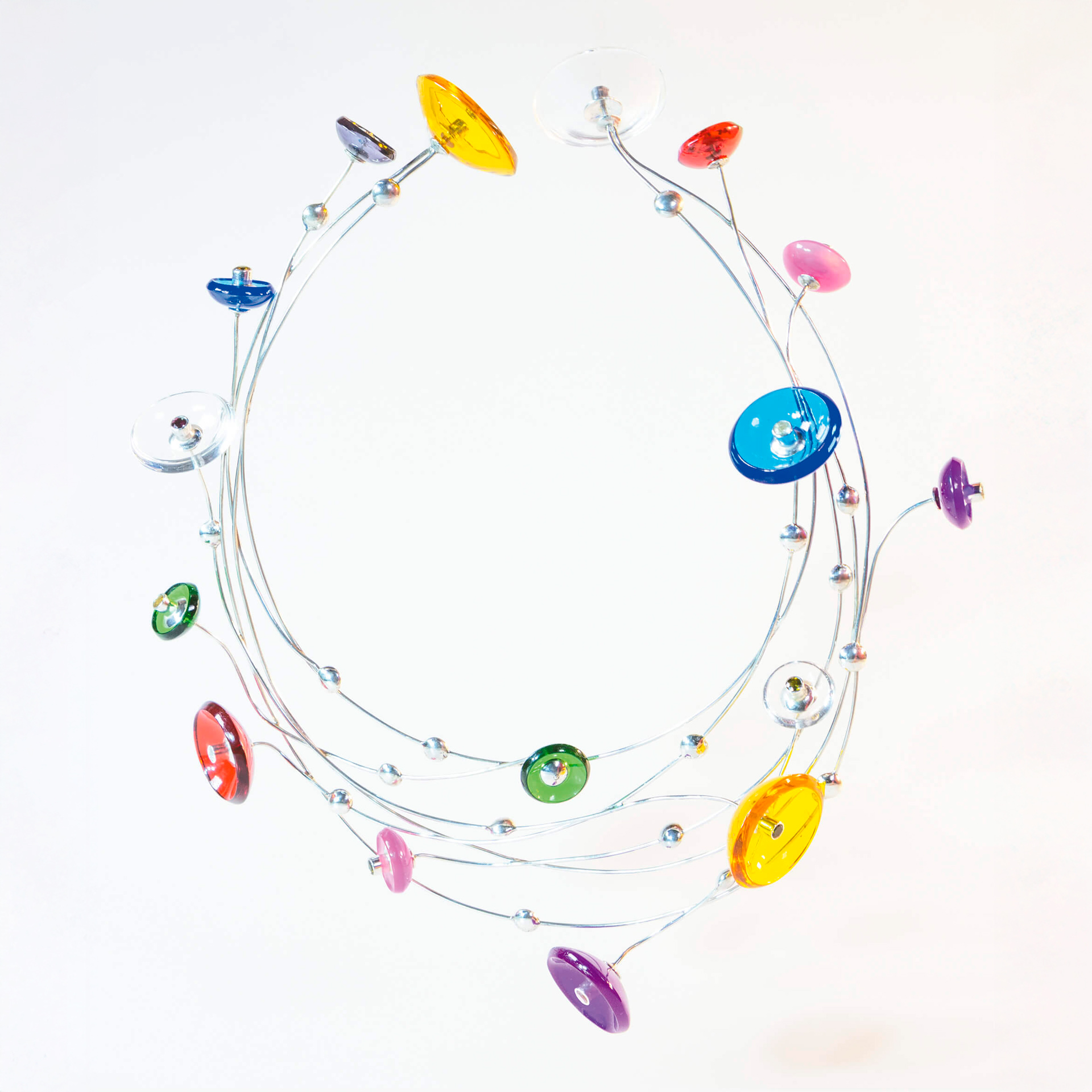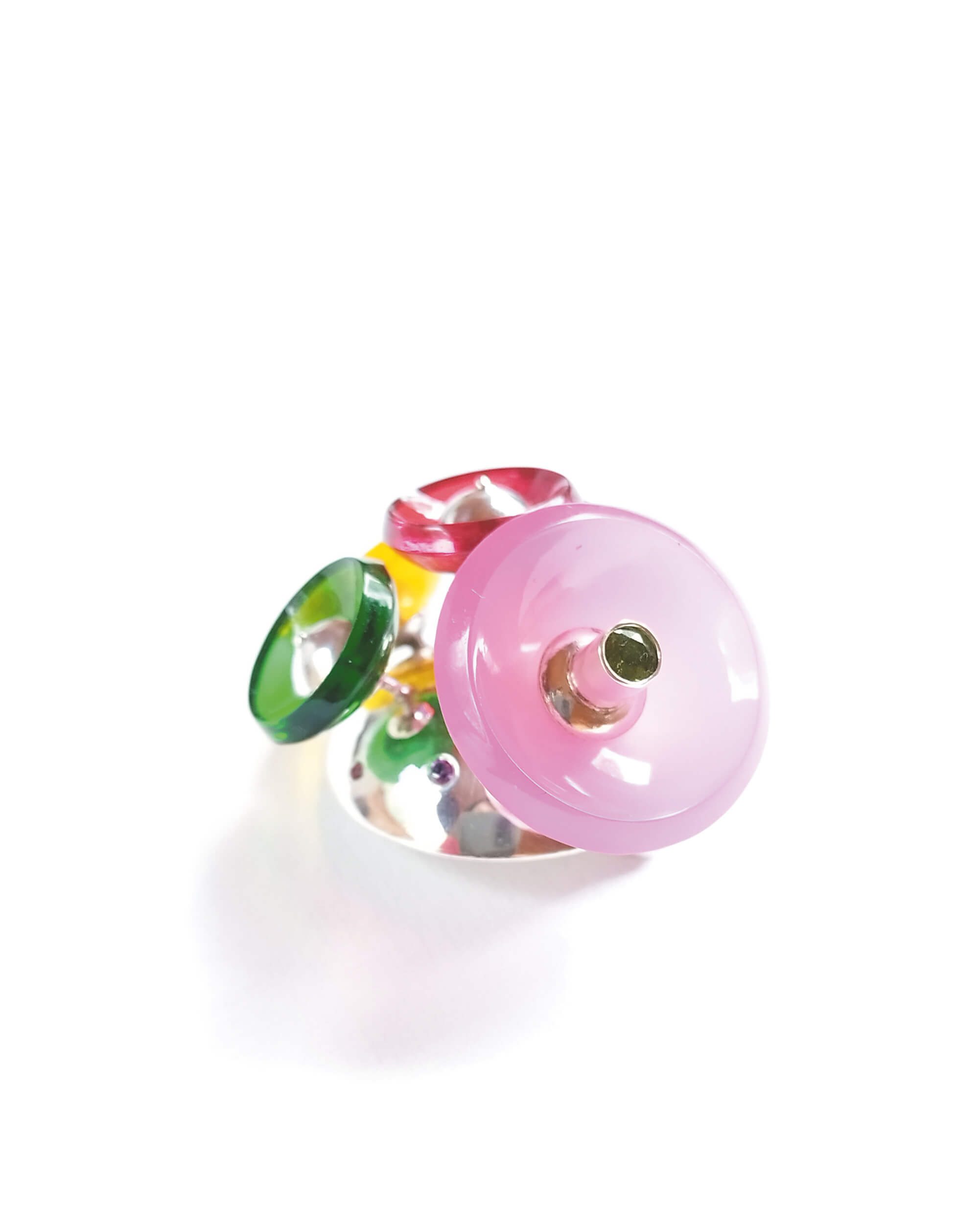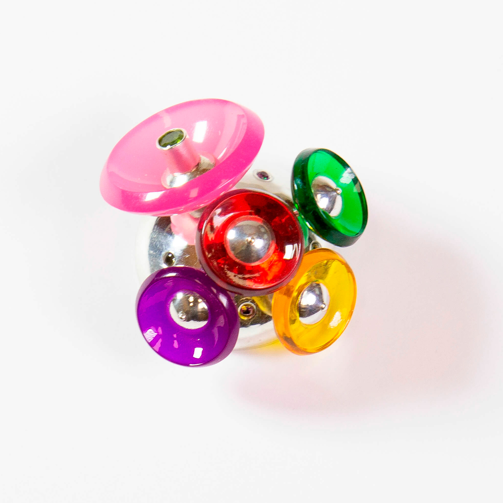 Sterling silver (950), thermoformed acrylic, peridot, emeralds, amethysts, aquamarine, and spinels (2025)